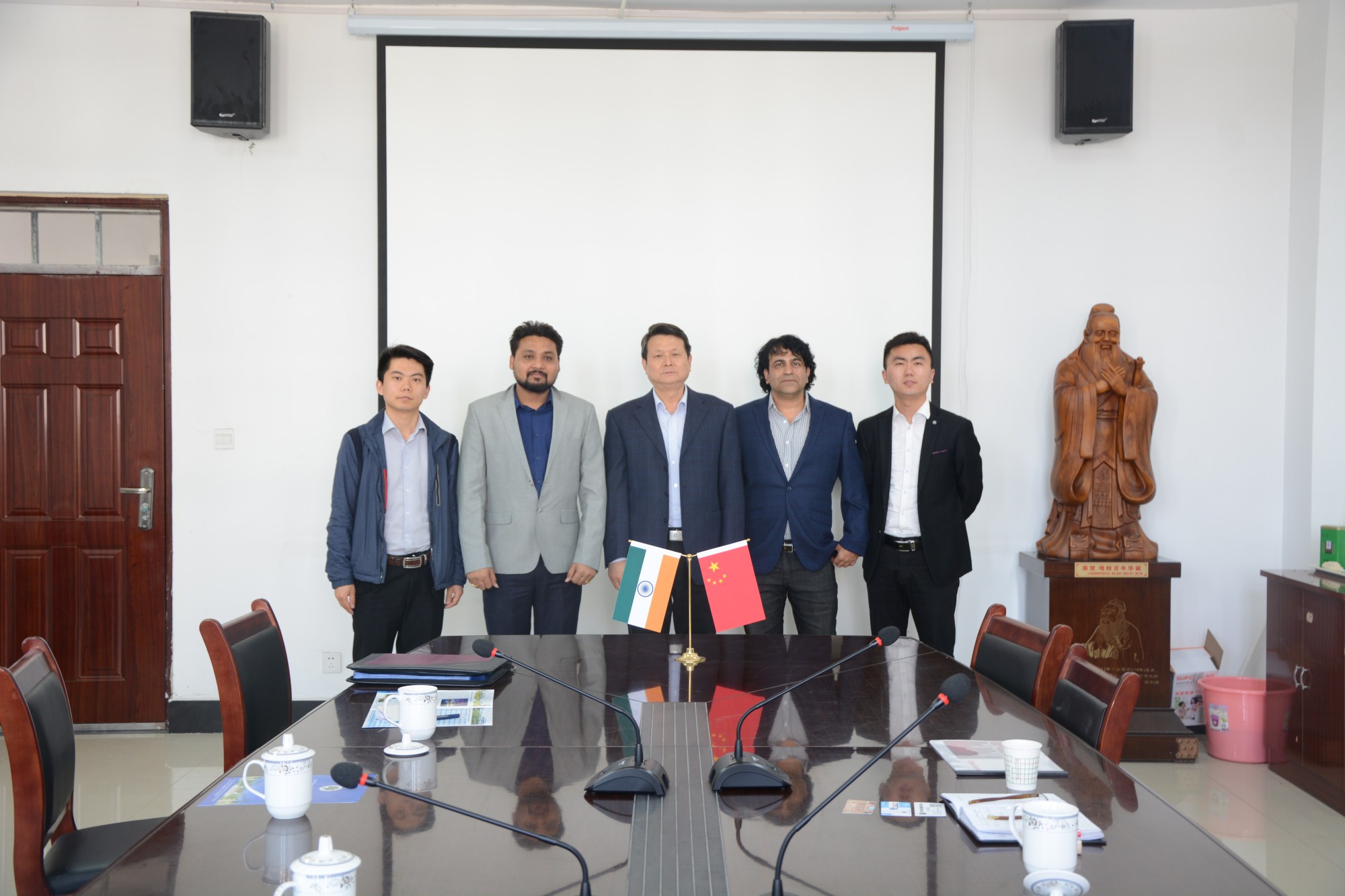 印度来华留学教育服务MAFALYA公司负责人Mr.Umang Patel和Dr Akef Siddiqui详细介绍了公司的构成、对外合作方式以及近年来在留学生输送方面所取得的成果。在交谈中,对方表示非常希望能与我校进行留学生交流合作。双方围绕留学生的学习管理、交通安全、政策法规等方面展开讨论。随后该公司中国区代表肖永涛详细介绍了该公司的留学生输送、留学任教、学生就业和学生培训等情况。