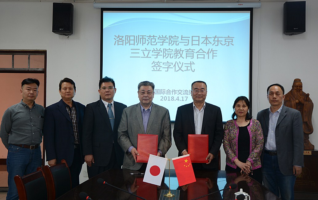 最后双方共同签署了洛阳师范学院与日本东京三立学院拓展两校间国际化交流的补充协议。