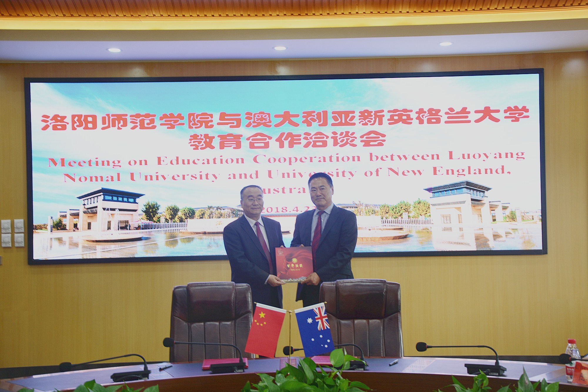 校长梁留科代表学校对Mingan Choct一行的来访表示热烈欢迎。他向来宾介绍了我校的办学理念、师资队伍建设、教学成果以及办学社会效应,重点介绍了近年来我校国际合作与交流所取得的重大成就。并对我校拟在马来西亚城市大学合作设立海外分校——河洛学院作了介绍。梁校长希望与澳大利亚新英格兰大学早日开展各种形式的合作与交流,期盼两校的国际交流与合作早日结出硕果。