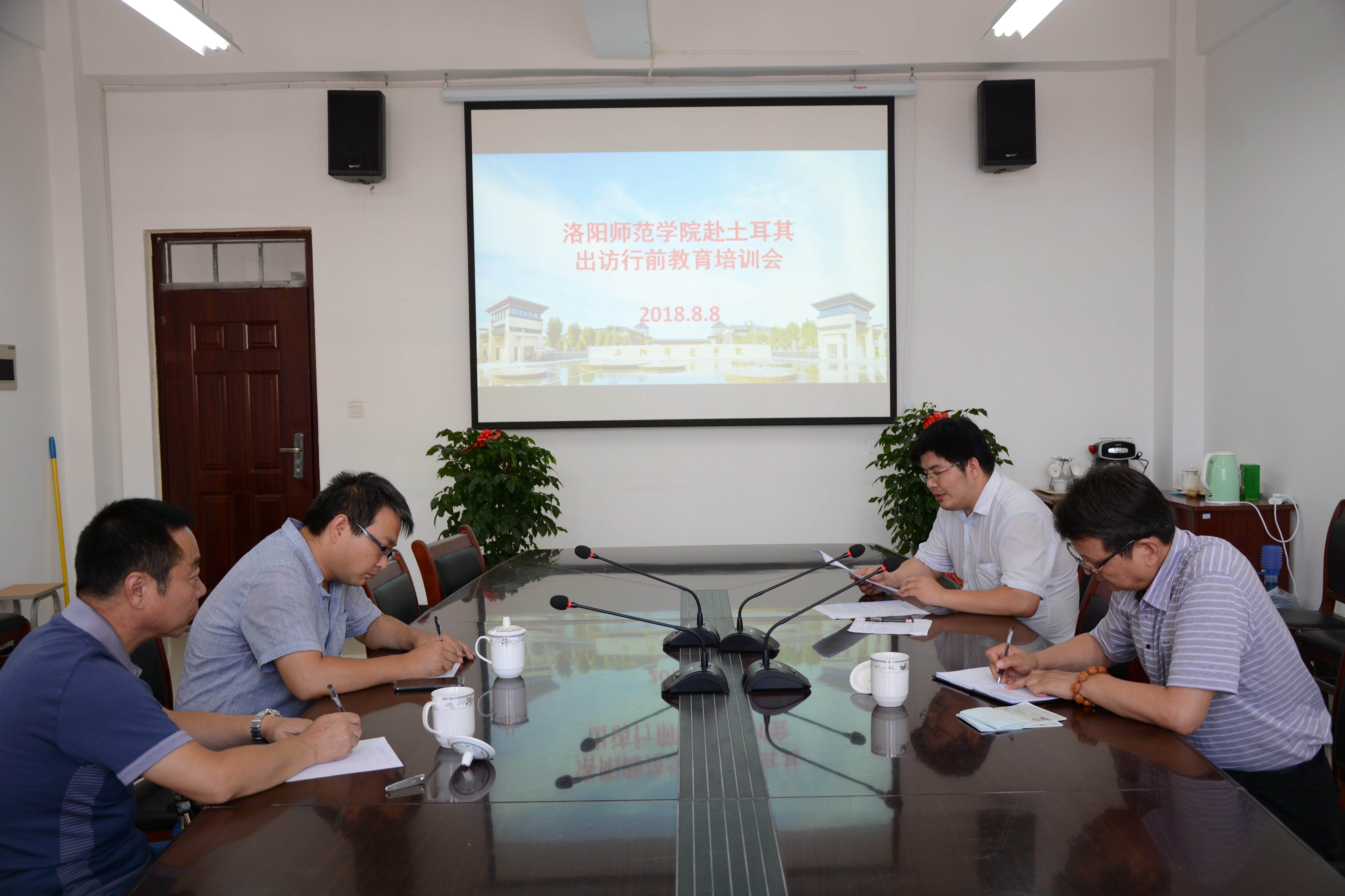 根据国家外事工作纪律和要求,结合学校实际,8月8日国际合作交流处集中组织召开洛阳师范学院2018年因公临时出国(境)赴土耳其团组行前教育培训会。此次培训会在国际合作交流处A1-430会议室召开,国际合作交流处处长李哲鹏主持会议。