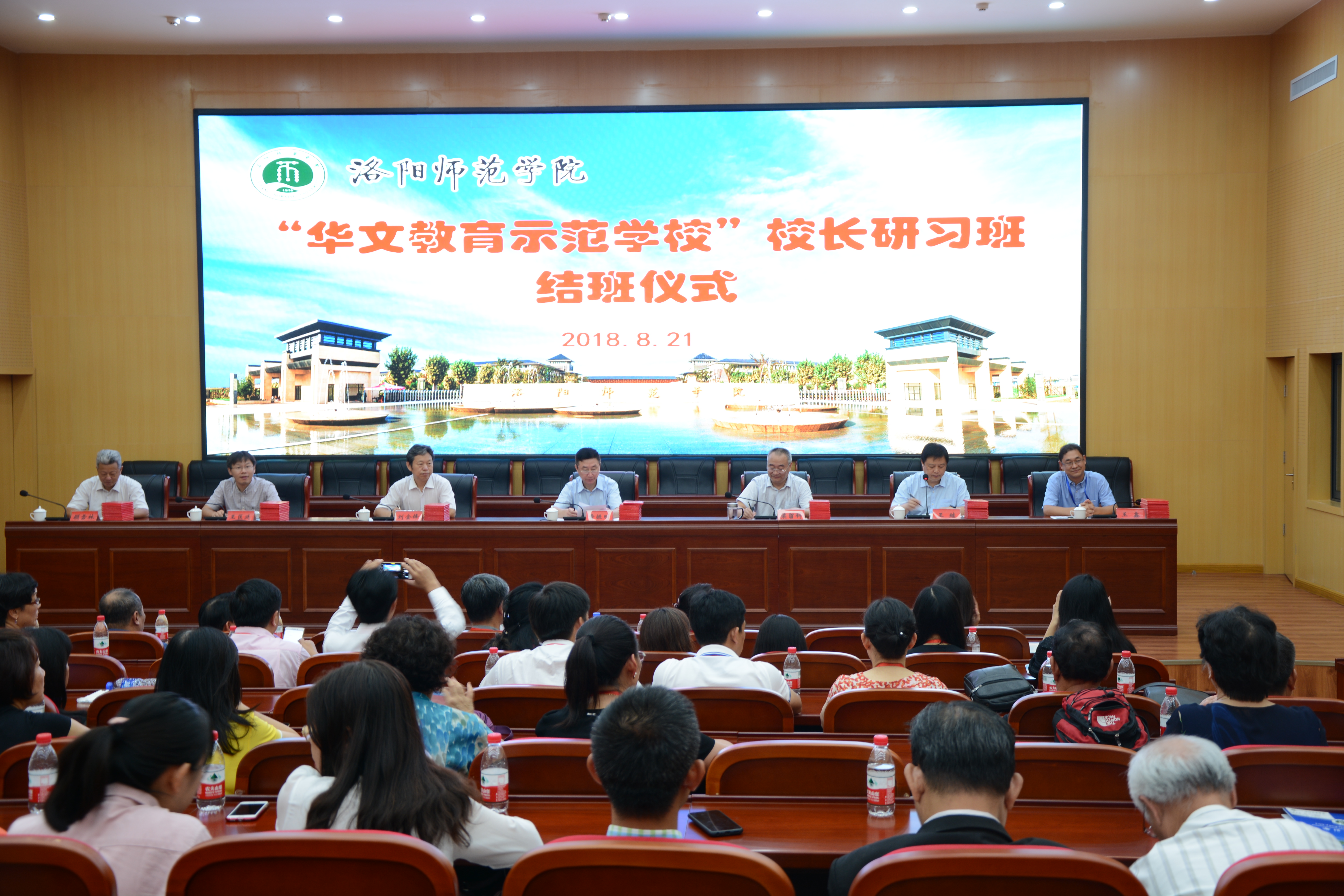 由国家外侨办、河南省外侨办主办,我校承办的海外“华文教育示范学校”校长研习班结班仪式在我校举行。来自世界各地80多名中小学校长齐聚我校,参加我校为期四天的师资培训和教学管理学习。国务院外侨办文化司司长雷振刚、河南省外侨办副主任刘金峰、华文教育中心副处长王匡廷、洛阳市外侨办副主任顾雪林、洛阳师范学院校长梁留科、副校长赵海彦、河南省外事侨务服务中心副主任王鑫出席出席,研习班由河南省外侨办国外侨务处调研员王继主持,在成均楼B-106召开。