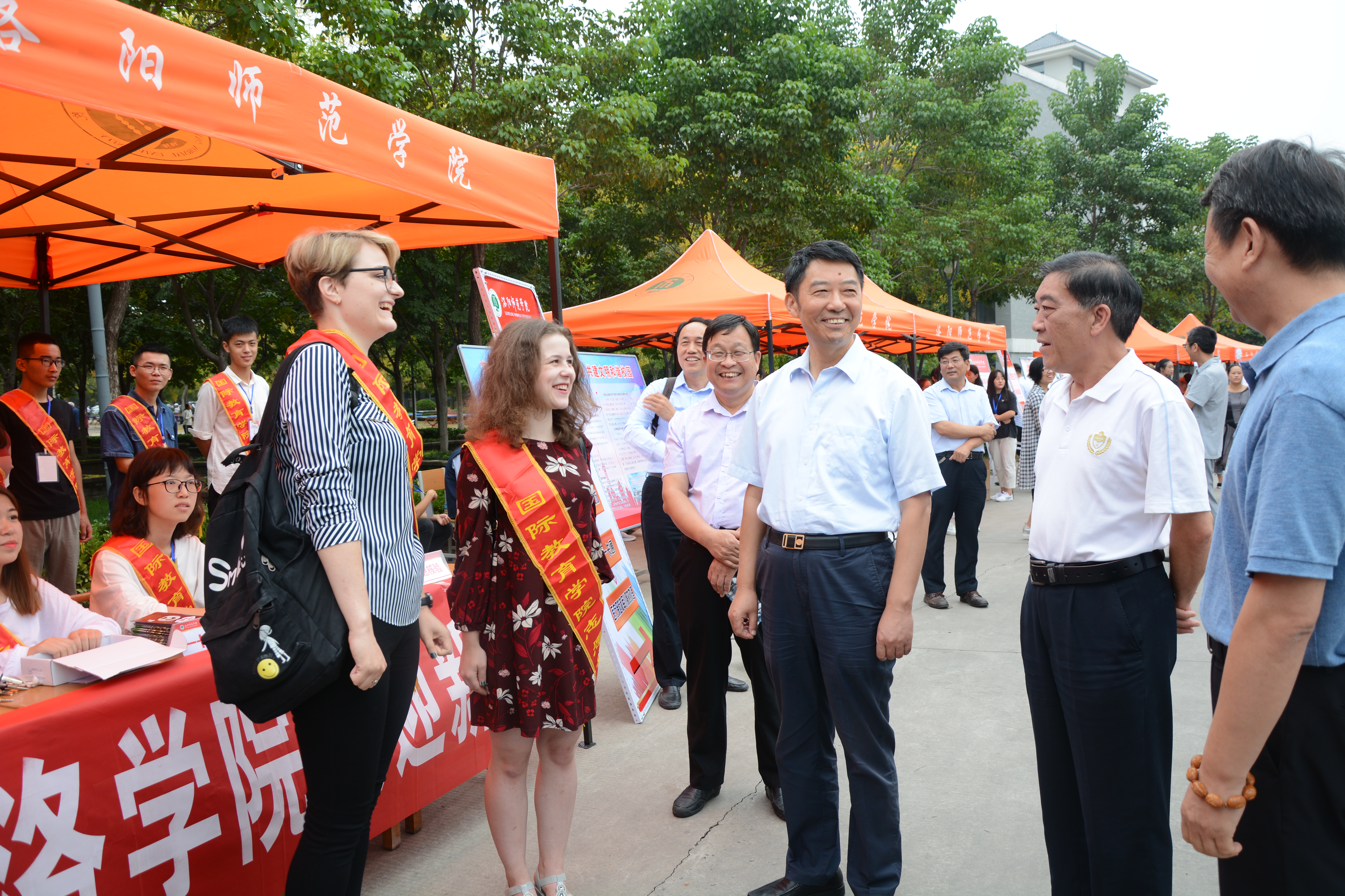 洛阳师范学院党委书记王洪彬莅临学院迎新现场指导工作,并与新生及家长亲切交谈。国际教育学院全体教职工人人参与、人人有责,积极投入到迎新工作中,提前到迎新现场为新生服务。
