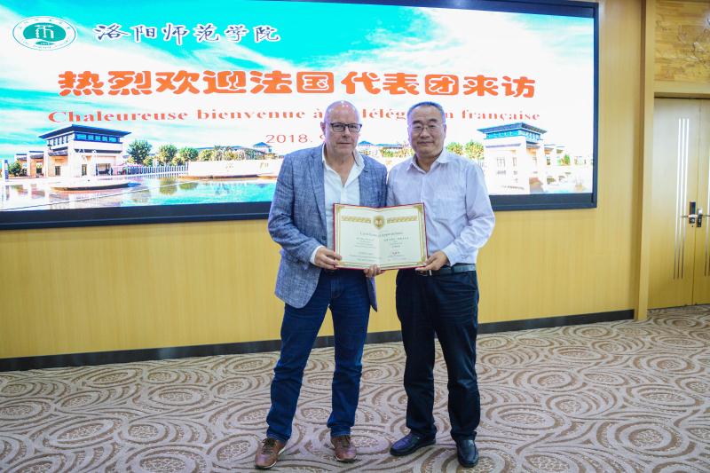梁留科校长从设施建设,人才培养,海外交流,人文建设等方面向法国代表团介绍了我校的基本情况,并希望通过法方此次来访,双方相互学习交流,增进彼此友谊。随后,帕斯卡•胡塞尔表示,在游览了洛阳三彩艺术馆,石画博物馆后,对馆中艺术品的样式及创作者的创作力和想象力感到惊叹,更对我校在历史文化方面的传承与发扬表示赞赏。期间,帕斯卡•胡塞尔主任指出,希望能够通过巴黎高等师范大学的优势,给予我校高等教育以帮助。