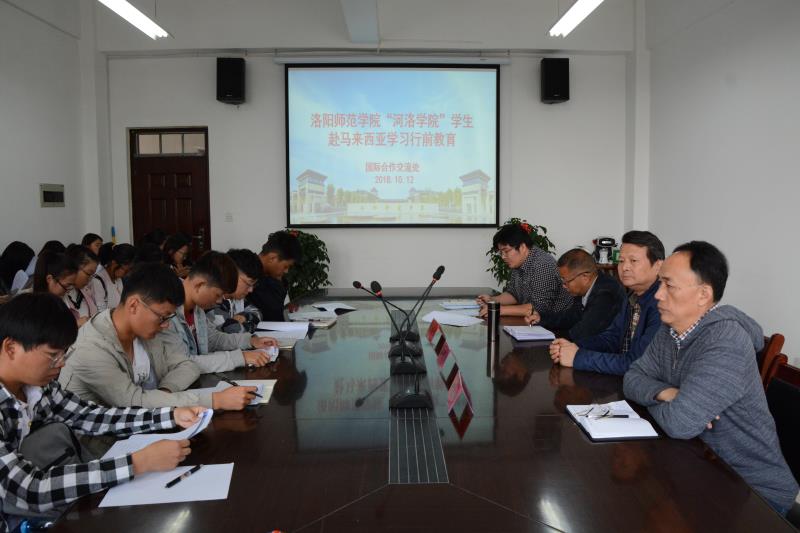 10月12日,我校召开2018级河洛学院新生赴马来西亚学习行前教育培训会。会议由国际合作交流处处长李哲鹏主持,河洛学院负责人、国际合作交流处负责人及相关工作人员参会,我校2018河洛学院赴马来西亚学习的30余名新同学参加了培训。