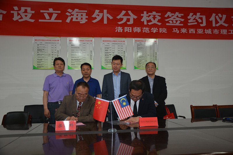 会后双方签订了《洛阳师范学院关于设立马来西亚城市理工大学海外分校的意向书》,聘请James Nga Chin Lik校长为我校客座教授。