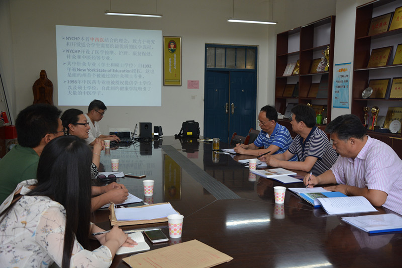 6月19日,美国纽约健康学院院长A LI SONG一行4人到我校就双方合作事宜进行了深入交流。国际交流合作处处长李哲鹏、体育学院院长周明华参加会议。