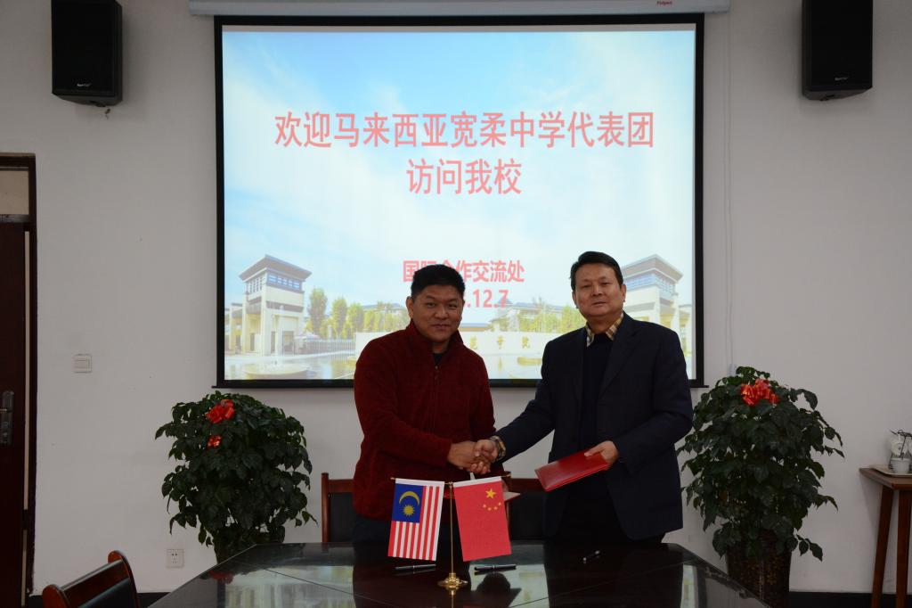 双方就教师外派学习、全科教师培养等达成一致意见,同意在马来西亚宽柔中学设立我校海外实习实训基地,并签订了两校国际教育合作意向书。
