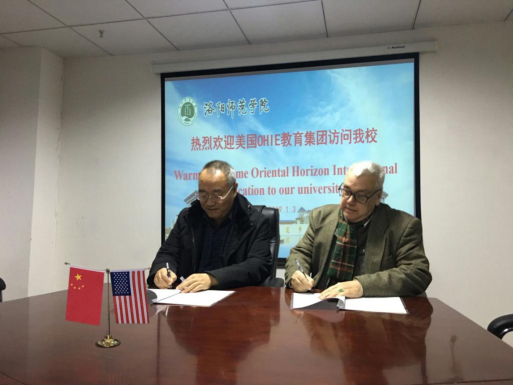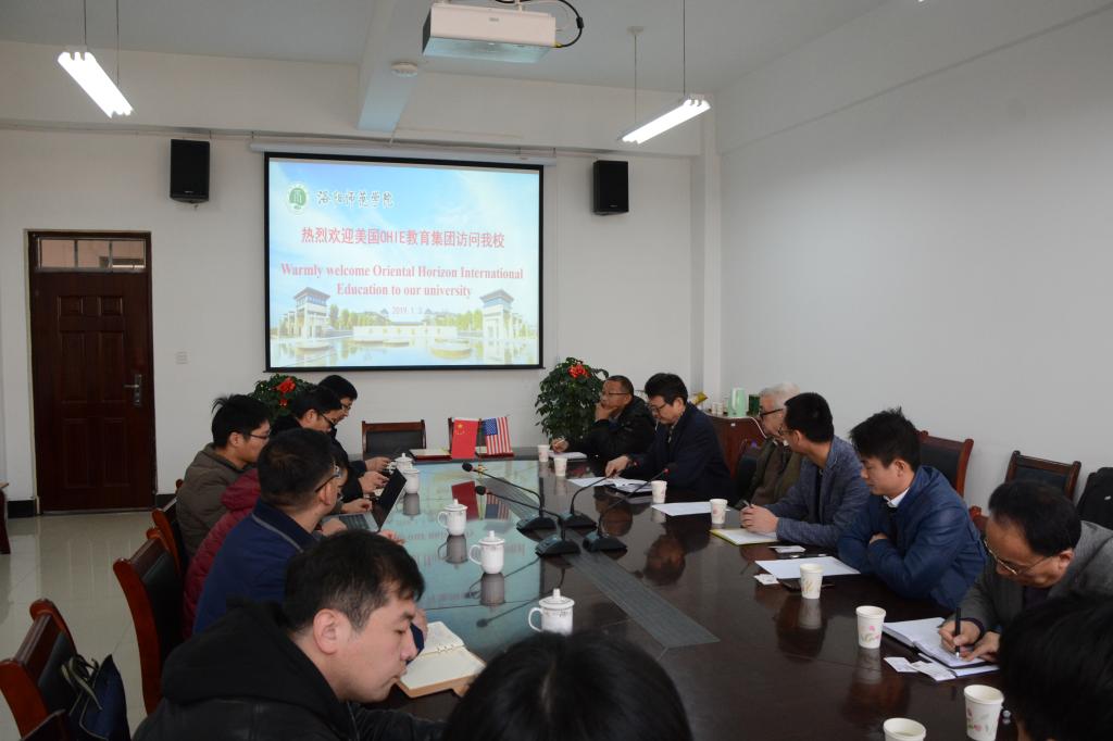 1月3日,美国OHIE教育集团负责人Tom Allen先生一行五人到我校进行教育合作洽谈。洽谈会在国际合作交流处A1—430召开,洛阳师范学院校长梁留科出席会议,国际合作交流处、教务处、国土与旅游学院、信息技术学院、电子商务学院、学前教育学院、外国语学院、商学院等部门负责人参加会议。会议由国际合作交流处处长李哲鹏主持。