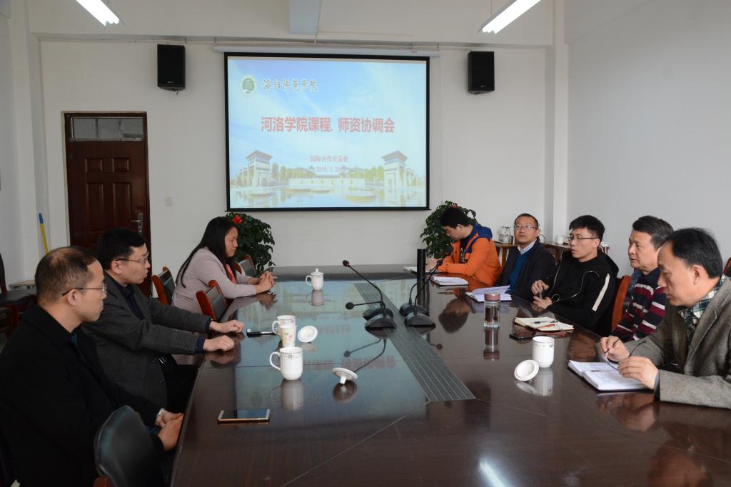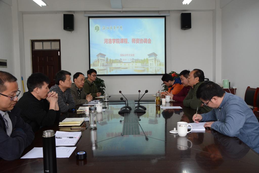 3月20-22日,我校召开河洛学院2019年课程、师资协调会。会议在国际合作交流处A1-430召开,国际合作交流处、教务处、文学院、教育科学学院、河洛学院等部门负责人以及马来西亚城市大学代表参加会议。国际合作交流处处长李哲鹏主持会议。
