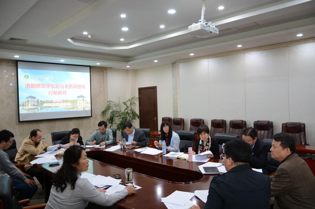 根据国家外事工作纪律和要求,结合学校实际,5月7日在成均楼B203会议室国际合作交流处组织召开洛阳师范学院2019年因公临时出国(境)赴马来西亚团组行前教育培训会。拟赴马来西亚团组成员、国际合作交流处负责人及外事工作相关人员参加了会议。会议由国际合作交流处处长李哲鹏主持。