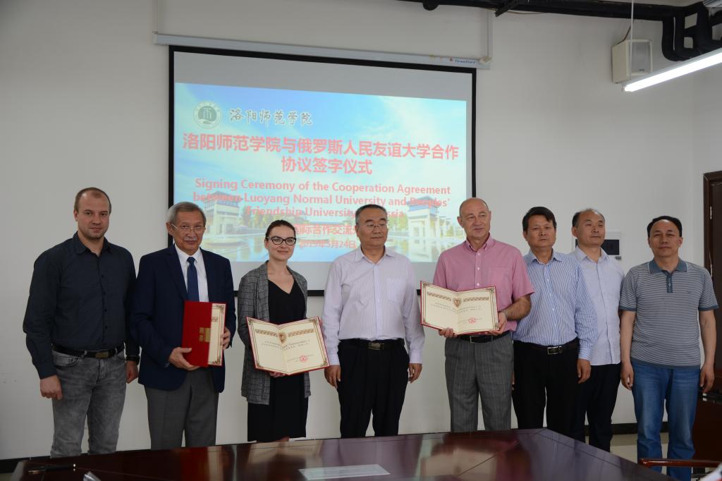 最后,双方共同签订了《洛阳师范学院与俄罗斯人民友谊大学教育合作协议》。
