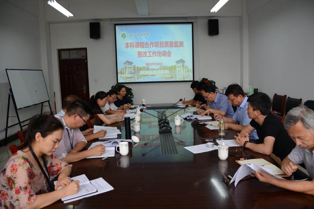 7月4日,我校召开本科课程合作项目质量监测整改工作协调会。商学院、学前教育学院、电子商务学院、国际教育学院、国际合作交流中心等部门负责人参加会议。