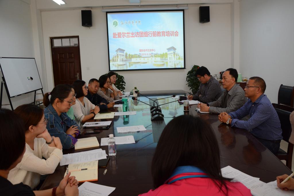 9月24日,根据国家外事工作纪律和要求,结合学校实际,我校在A1-430召开赴爱尔兰卡罗理工学院因公出访团组行前教育培训会,国际合作交流中心(港澳台事务办公室)主任曲宏涛主持会议,出访交流的10名教师及相关工作人员参加会议。