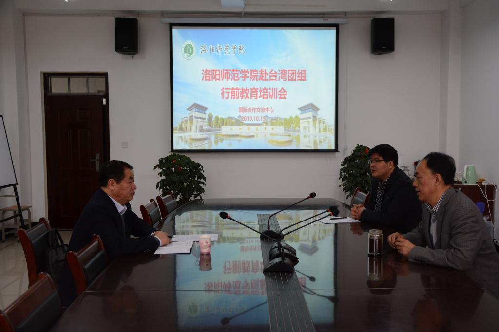 根据国家对外合作交流工作相关纪律和要求,结合学校实际,10月15日国际合作交流中心集中组织召开洛阳师范学院2019年因公临时出国(境)赴台湾团组行前教育培训会。此次培训会在国际合作交流中心A1-430会议室召开,国际合作交流中心、港澳台事务办公室主任曲宏涛主持会议。