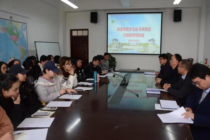 11月20日,,根据国家外事工作纪律和要求,结合学校实际,我校召开2019级河洛学院新生赴马来西亚学习行前教育培训会。国际合作交流中心(港澳台事务办公室)主任曲宏涛主持会议,国际合作交流中心负责人及相关工作人员参会,我校2019级河洛学院赴马来西亚学习的30余名新同学参加了培训。
