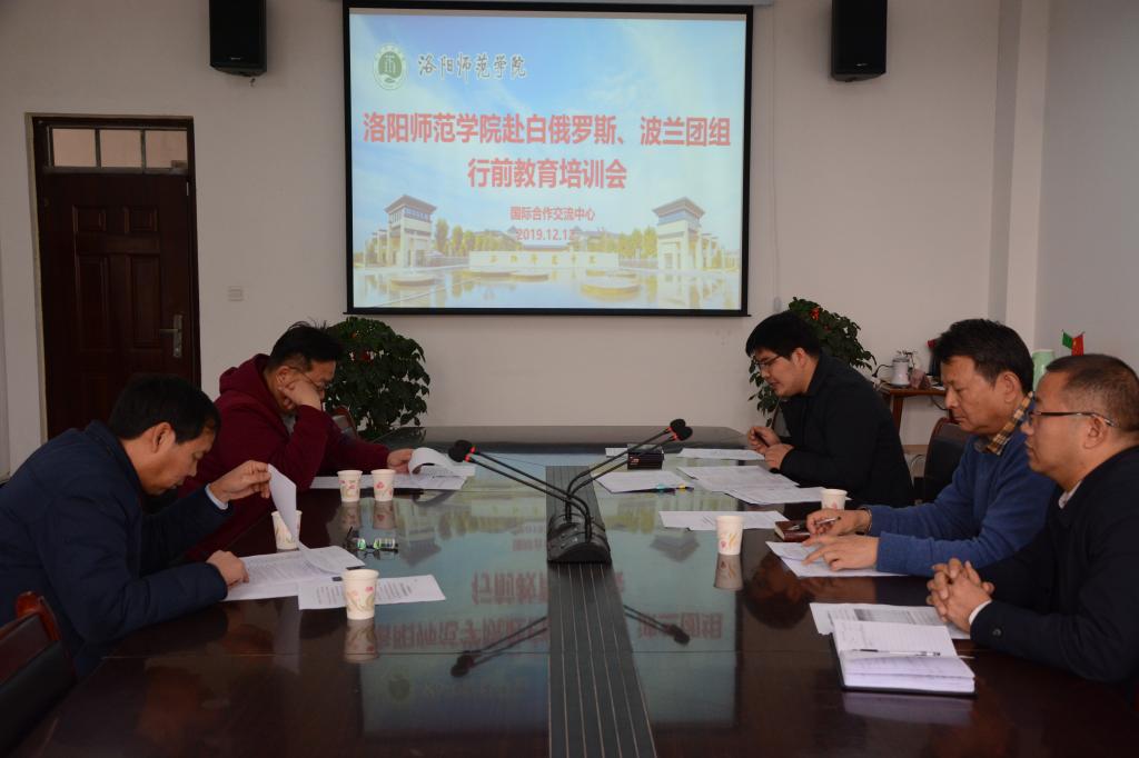 12月12日,根据国家外事工作纪律和要求,结合学校实际,我校在A1-430召开赴波兰、白俄罗斯因公出访团组行前教育培训会,国际合作交流中心(港澳台事务办公室)主任曲宏涛主持会议。