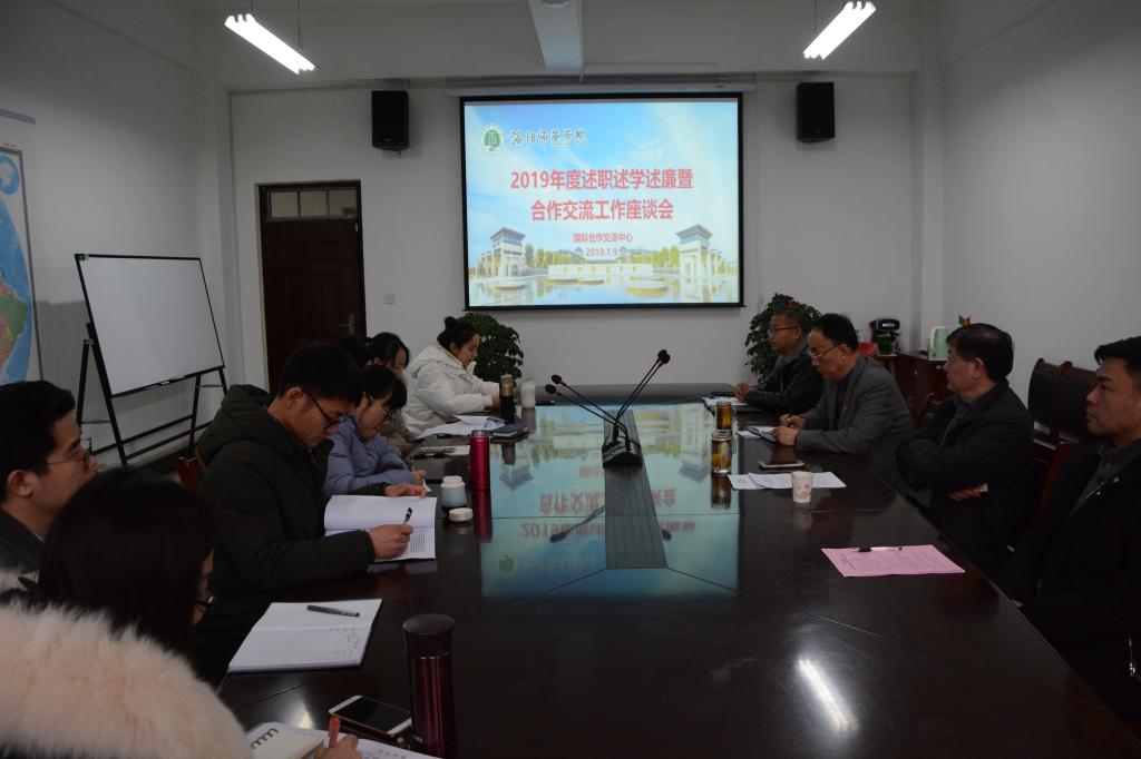 1月9日,国际合作交流中心召开2019年度述职述学述廉暨合作交流工作座谈会,外事部门全体教职工参加。会议在A1-430召开,由国际合作交流中心(港澳台事务办公室)主任曲宏涛主持。