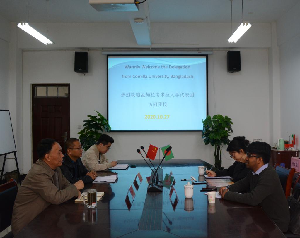 Maruf Mollah对我校深厚的历史文化底蕴表示赞赏,对学校外事工作取得的丰硕成果给予高度评价。他表示,近年来孟加拉国内对于中国文化推广有着极高接受度,学生对于来华求学发展有着强烈意愿。他希望考米拉大学能与中国高校紧密联系,在留学生培养、共建国际学校等方面尽快推动实质性合作。
