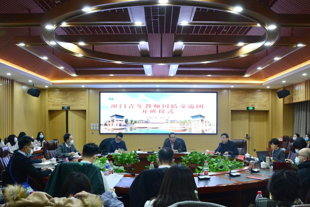 12月1日至2日,中国教育国际交流协会港澳台事务办公室主任李炳国率澳门青年教师国情交流团一行三十余人来我校考察交流。交流团开班仪式在成均楼B301会议室举行。副校长赵海彦,国际合作交流中心(港澳台事务办公室)、历史文化学院负责人参加交流。