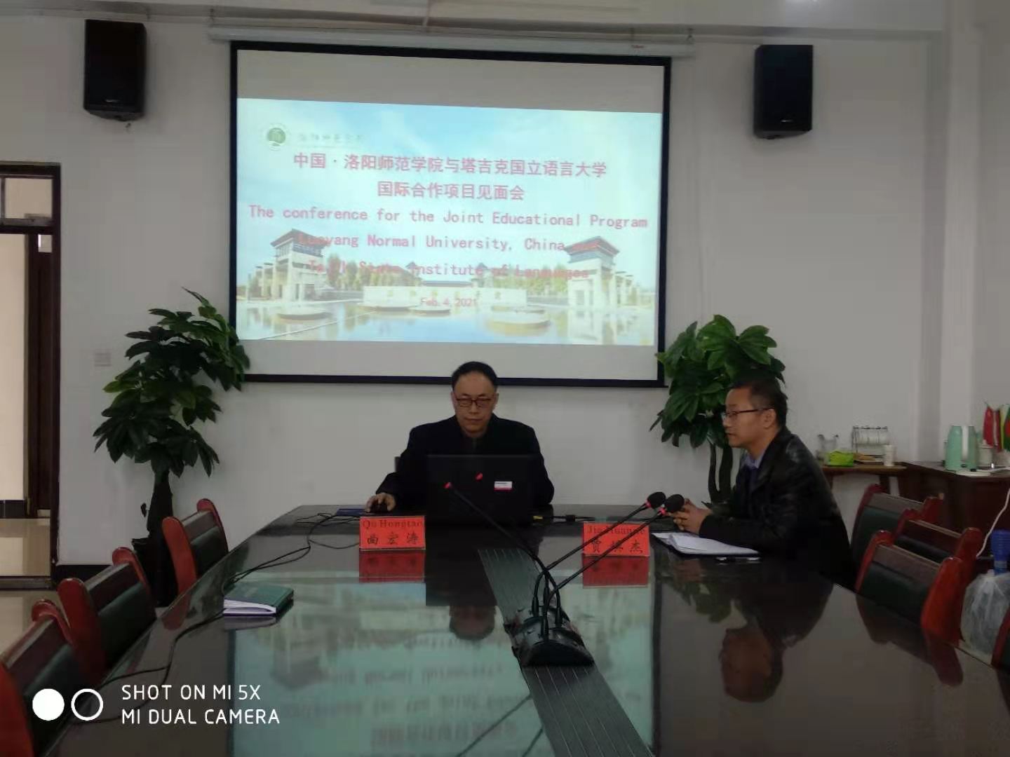 2月4日,应国际合作交流中心邀请,我校与塔吉克语言大学召开合作项目洽谈会。会议在腾讯视频召开。此次会议受到外方高度重视,与会人员有:分管外事副校长Rajabzoda Saidnemon, 亚洲语言学院院长Gafurov Zoir, 英语学院院长Musoyamov Zubaidullo,国际关系处处长Samadov Loiq,以及相关学院的系主任等近20余人。会议由国际合作交流中心曲宏涛主任主持。