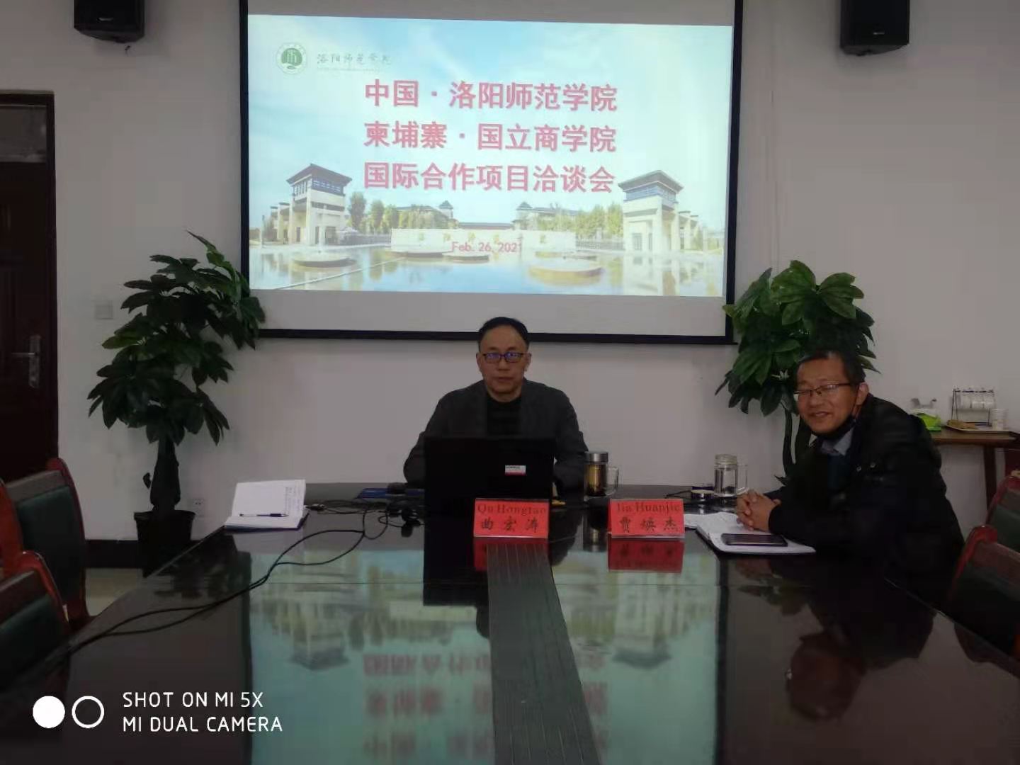 2月26日,应国际合作交流中心邀请,我校与柬埔寨国立商学院召开合作项目洽谈会。会议在腾讯视频召开。此次会议与会外方人员为:国际合作部主任 Lee Sovannleap,招办主任Phal Sopheap, 以及通识教育学院院长 Bu Phiru等6人。会议由国际合作交流中心曲宏涛主任主持。