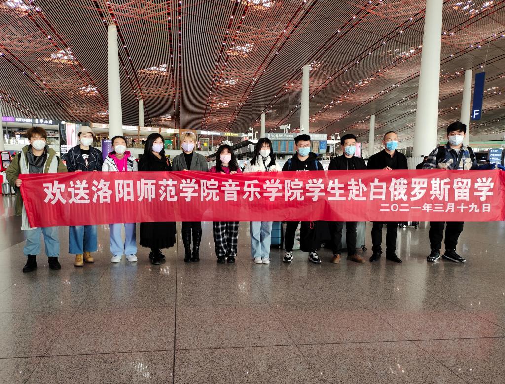 3月19日,受校领导委托,国际合作交流中心指派外事人员赴京欢送中外合作办学(音乐学)项目学生前往白俄罗斯国立师范大学留学。