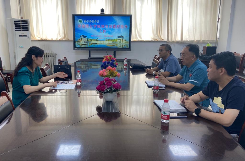 曲宏涛主任向邢台学院领导介绍了我校国际合作交流中心的日常工作和岗位职责,特别介绍了近几年我校对外合作交流工作的发展情况。他表示我校国际合作交流中心一直坚持外事服务于学校发展大局,不断满足全校师生国际化发展需求。
