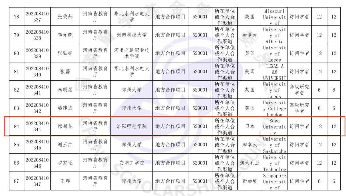 近日,国家留学基金管理委员会下发关于“2022年西部地区人才培养特别项目、地方合作项目录取通知”(留金项〔2022〕20号)通知,我校商学院青年教师郑菊花喜获地方合作项目类资助,将以访问学者身份在日本Saga University(佐贺大学)开展为期12个月的访学研修,在此期间国家留学基金委将给予一次往返国际旅费和资助期限内的奖学金。