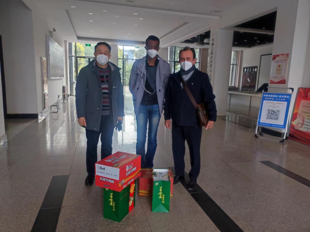 1月17日上午,在中国传统节日春节来临之际,国际合作交流处处长曲宏涛及工作人员探望了我校外籍教师,并向外教赠送了慰问品。