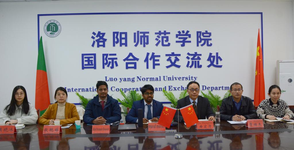 Mollah Maruf对于提议表达了由衷的感谢,他表示将全力配合我校在当地设立“国际中文教育及河洛文化人文交流中心”。他认为我校以学生为中心的优秀教育理念以及以师范专业为核心的人才培养模式,必将助力“一带一路”沿线国家社会经济发展对高水平国际化人才的需求。他表示孟加拉国“一带一路”汉语中心愿为我校在当地提供无偿服务,积极宣传我校各项文化、艺术、国际汉语交流活动,协助我校在当开展来华留学生招生宣传服务工作。