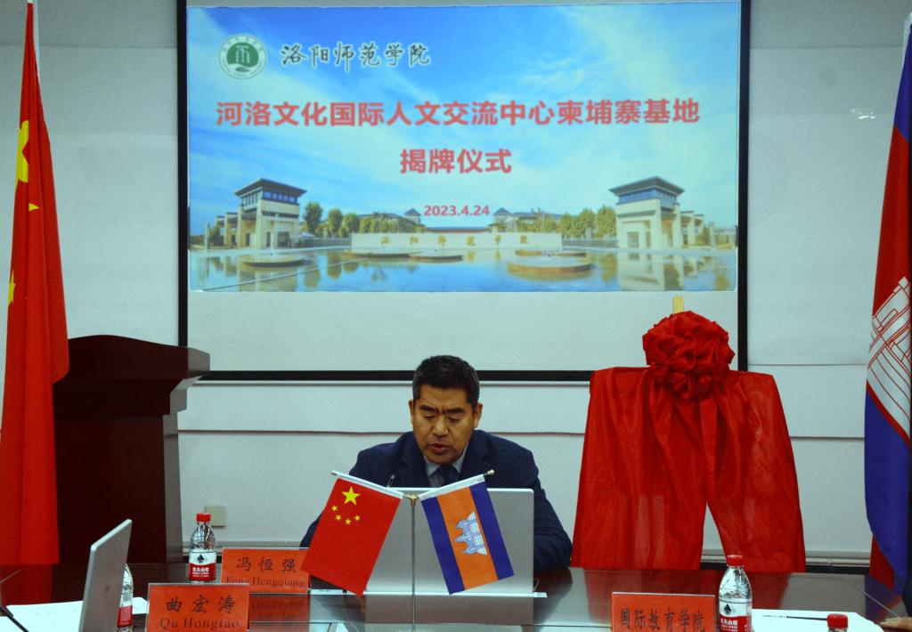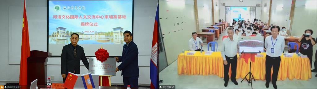 冯恒强、高文胜在中柬两地同时为“洛阳师范学院河洛文化国际人文交流中心柬埔寨基地”揭牌。
