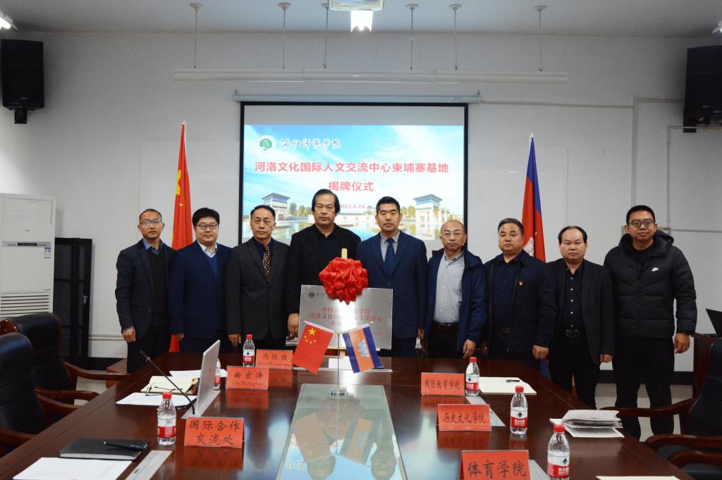 4月24日,我校在A1-217会议室通过视频会议形式举行洛阳师范学院河洛文化国际人文交流中心柬埔寨基地揭牌仪式。柬埔寨客属会馆会长罗世兴,柬埔寨崇正学校校长高文胜,河南贸促会副会长丁卫东,河南贸促会相关友好单位负责人以及崇正学校师生在柬埔寨崇正学校分会场参会。我校副校长冯恒强,教务处、国际合作交流处,文学院、历史文化学院、体育学院、音乐学院、美术与艺术设计学院、国际教育学院等单位负责人参加仪式。