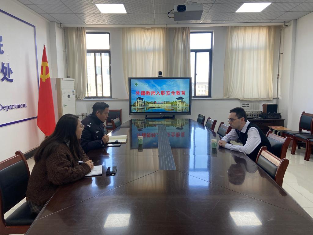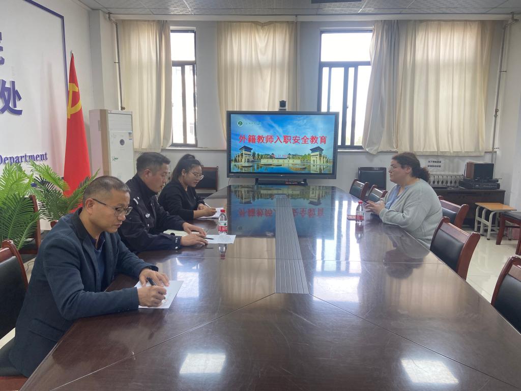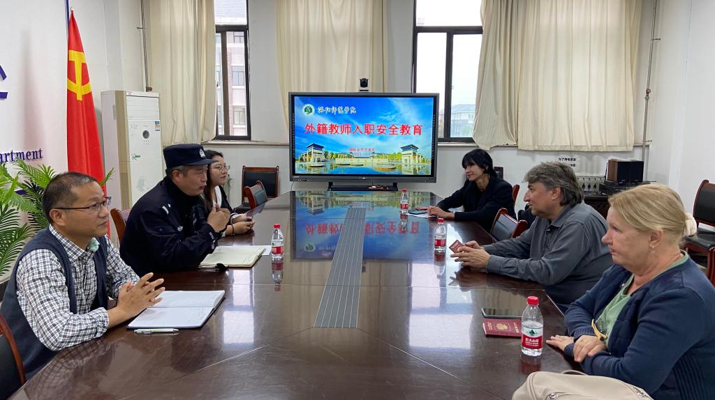 10月27日,我校在A1-430会议室召开外籍教师入职安全教育工作会议。会议由国际合作交流处副处长贾焕杰主持,洛阳市公安局伊滨区李村分局负责人、我校新入职外籍教师及国际合作交流处工作人员参加。