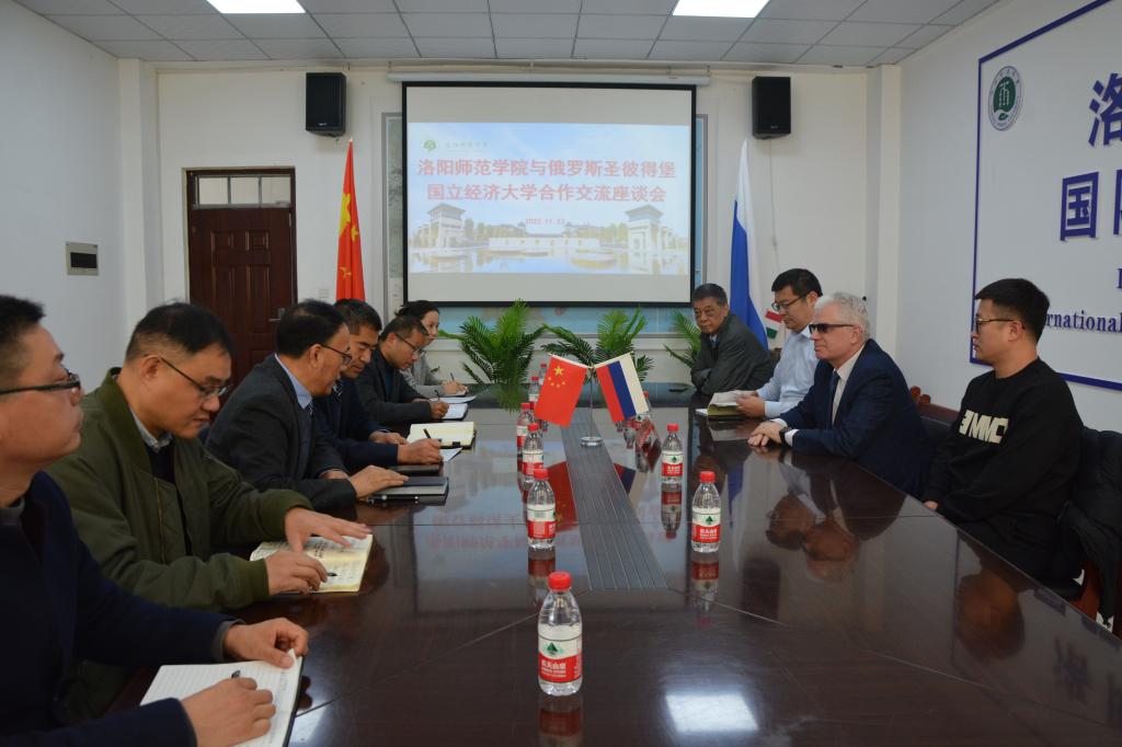 安德烈·米哈伊洛维奇副校长感谢学校的热情接待。他表示学校非常重视与洛阳师范学院的合作,此次出访是边境开放后,学校派出第一支校级领导带队的访问团组。他详细介绍了圣彼得堡国立经济大学的发展沿革、办学特色及专业优势。他表示,圣彼得堡国立经济大学一直非常重视国际交流合作,希望两校在科学合作、学生交流、教师访问、硕博培养等方面稳步推进合作,此次来访也是希望结合两校目前发展需求,从实际出发尽快开展项目合作,促进两校教育国际化水平的提升,也为促进中俄两国人才培养与文化交流贡献力量。
