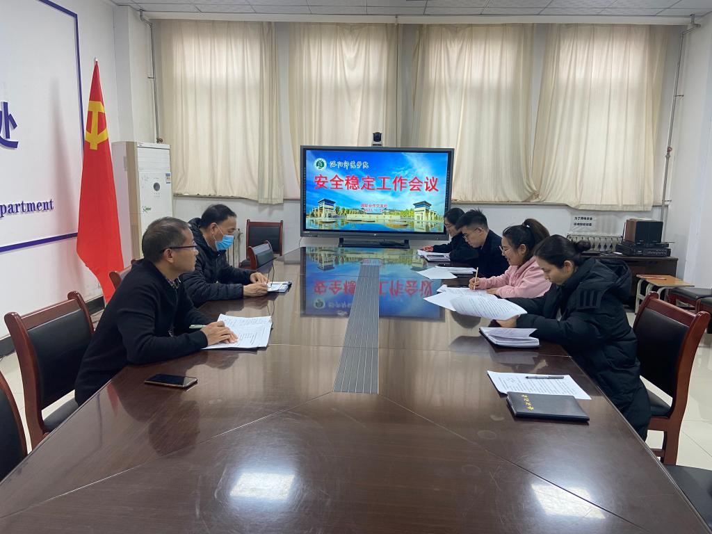 会上,曲宏涛传达了省教育厅和我校安全稳定工作会议的会议精神。他强调,全体教职工要认清形势,提升政治站位,切实增强责任感和紧迫感,深刻剖析,找出不足和短板。紧盯学校安全稳定重点领域,全员出动,常抓不懈,主动担当作为,坚决维护校园政治安全和意识形态安全,坚守校园安全稳定工作底线,确保我校和谐稳定安全发展。