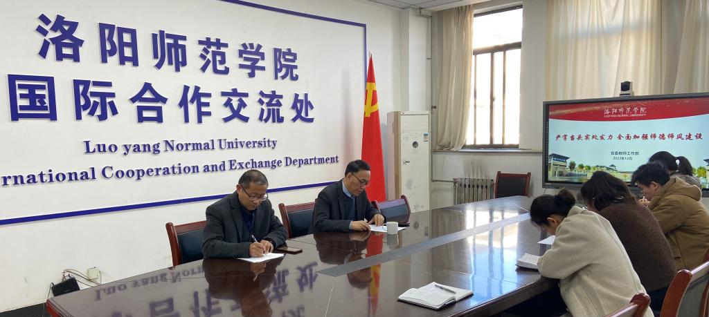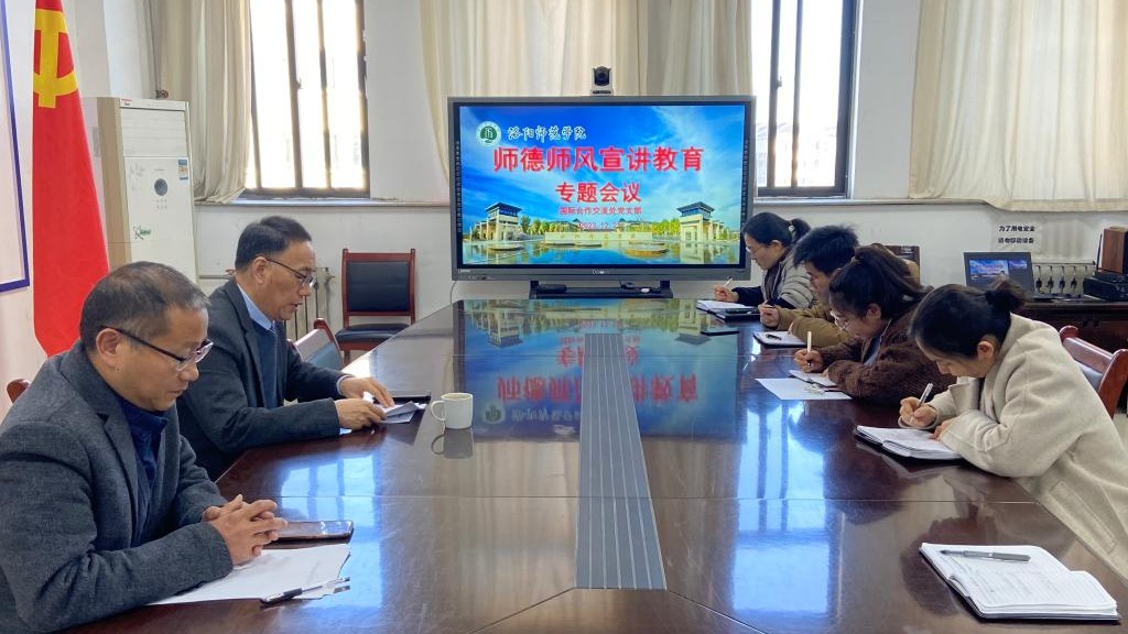 12月22日,国际合作交流处党支部在A1-430会议室召开师德师风宣讲教育专题会议。国际合作交流处全体党员参加会议,会议由党支部书记曲宏涛主持。