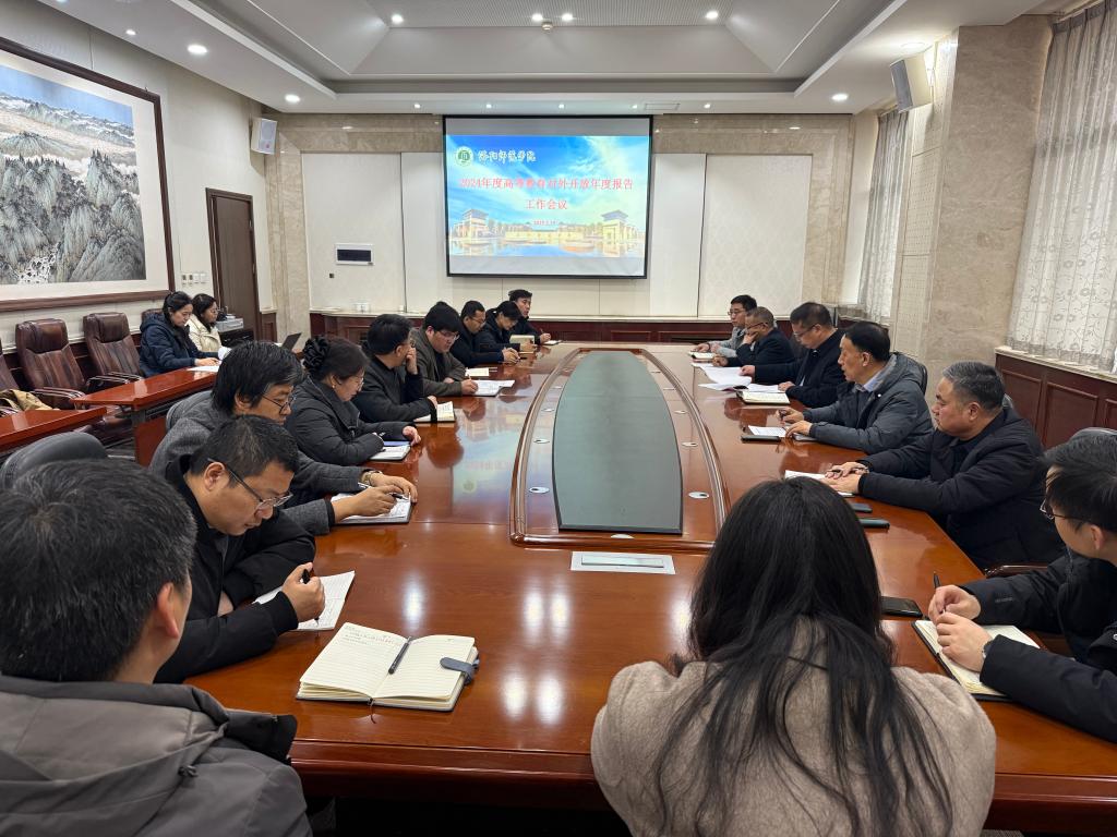 2月19日我校在成均楼B302会议室召开2024年度河南省高等教育对外开放年度报告编制工作推进会。副校长程金龙出席会议,国际合作交流处、发展规划处、人事处、财务处、教务处、科研处、研究生处、学生处、招生就业处、团委、宣传部,以及文学院、数学科学学院、物理与电子信息学院、国际教育学院等部门负责人参会。会议由国际合作交流处处长曲宏涛主持。