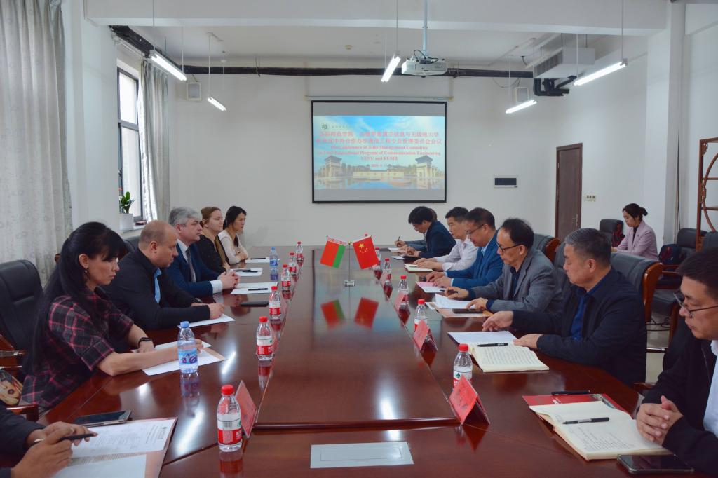 程金龙对利哈切夫斯基院长一行表示诚挚欢迎,并感谢白俄罗斯国立信息与无线电大学对合作办学项目的大力支持。会议总结了项目办学成果、梳理了办学过程中存在的问题和应对措施,通过了两校联合修订的人才培养方案。