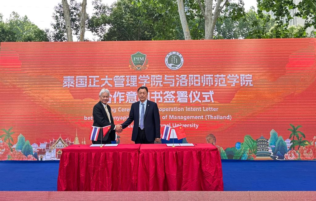 5月28日,在中泰建交50周年暨“中泰友谊金色50年”之际,我校与泰国正大管理学院(Panyapiwat Institute of Management, PIM)成功签署合作协议。泰国驻华公使陈文斌、洛阳市市长张玉杰出席并见证签约。