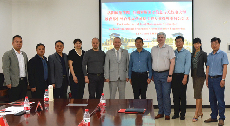 4月29日上午,我校与白俄罗斯国立信息与无线电大学召开2024年中外合作办学通信工程专业联合管理委员会会议,副校长冯恒强出席了会议。白俄罗斯国立信息与无线电大学副校长德米特里·库兹涅佐夫、计算机设计学院、外事处负责人,我校国际合作交流处、物理与电子信息学院、国际教育学院主要负责人及相关工作人员参加了会议。会议由国际合作交流处处长曲宏涛以及白俄罗斯国立信息与无线电大学外事处奥莉格·库兹涅佐娃教授共同主持,会议在成均楼B202举行。