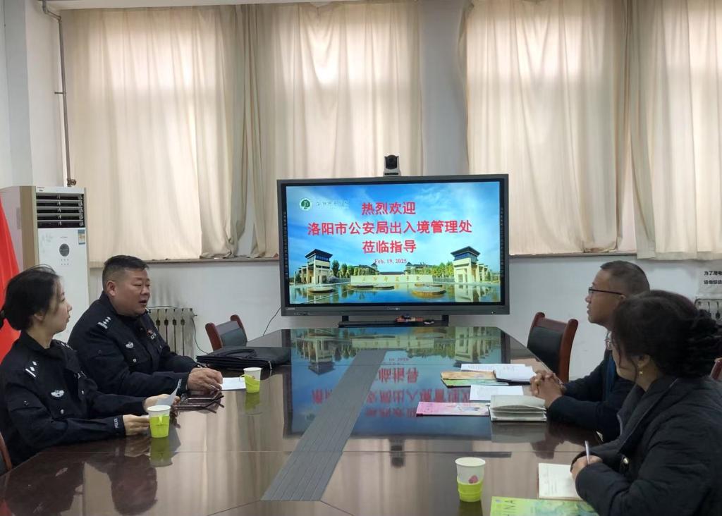 2月19日上午,洛阳市公安局出入境管理大队一行莅临我校指导工作。座谈会在A1-430会议室举行,国际合作交流处和国际教育学院相关负责人出席座谈。