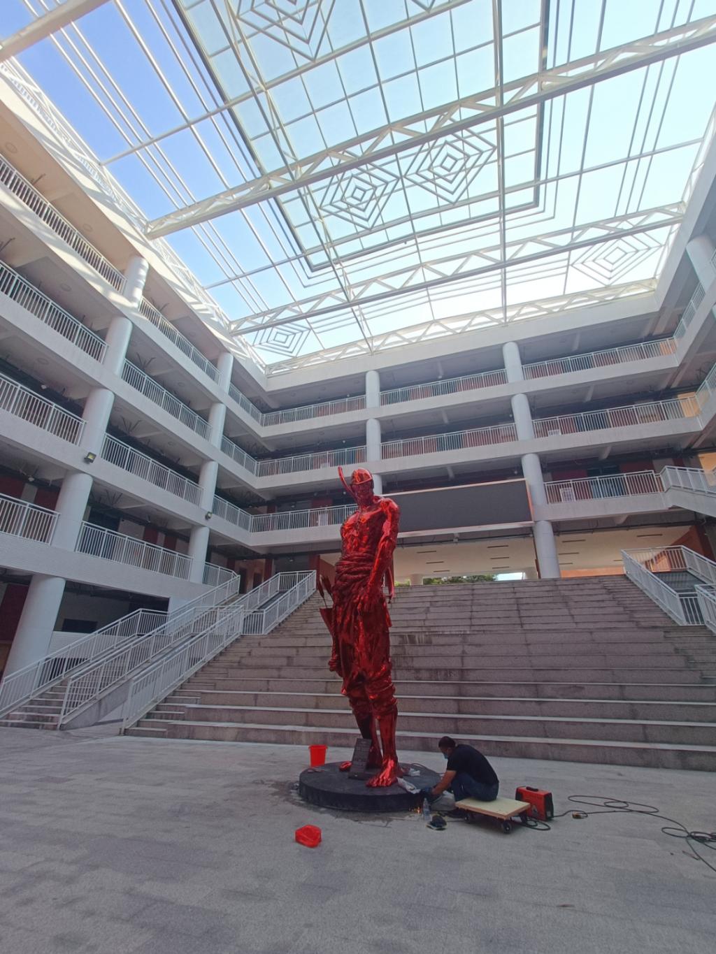 索莱达楼内部:走的时候路过了索莱达楼,发现新搬了一个雕塑,是个武僧。