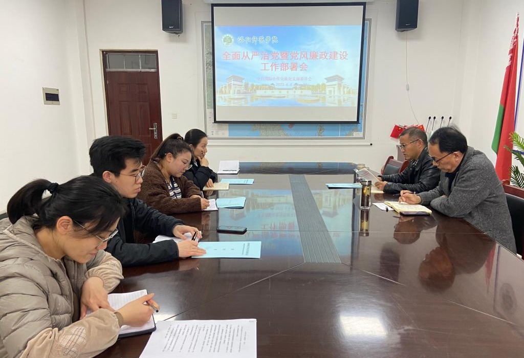 4月4日,国际合作交流处在会议室召开全面从严治党暨党风廉政建设工作部署会,国际合作交流处党支部书记曲宏涛主持会议。