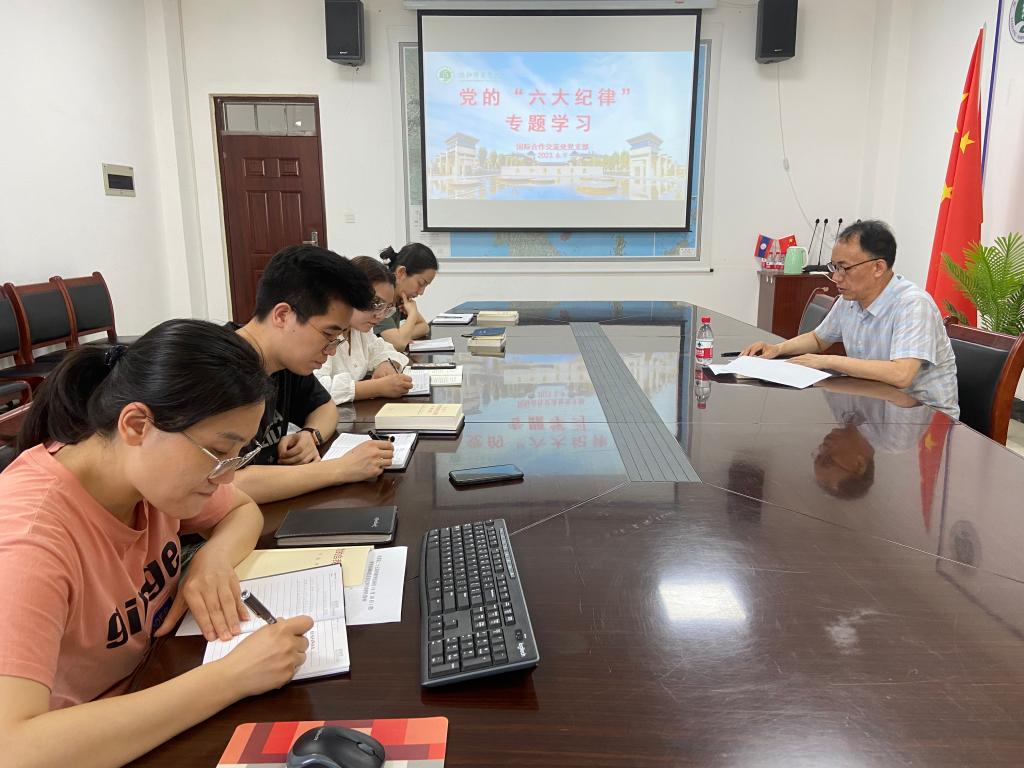 6月9日,国际合作交流处党支部在A1-430会议室召开党的“六大纪律”专题学习。国际合作交流处全体党员参加会议,会议由党支部书记曲宏涛主持。