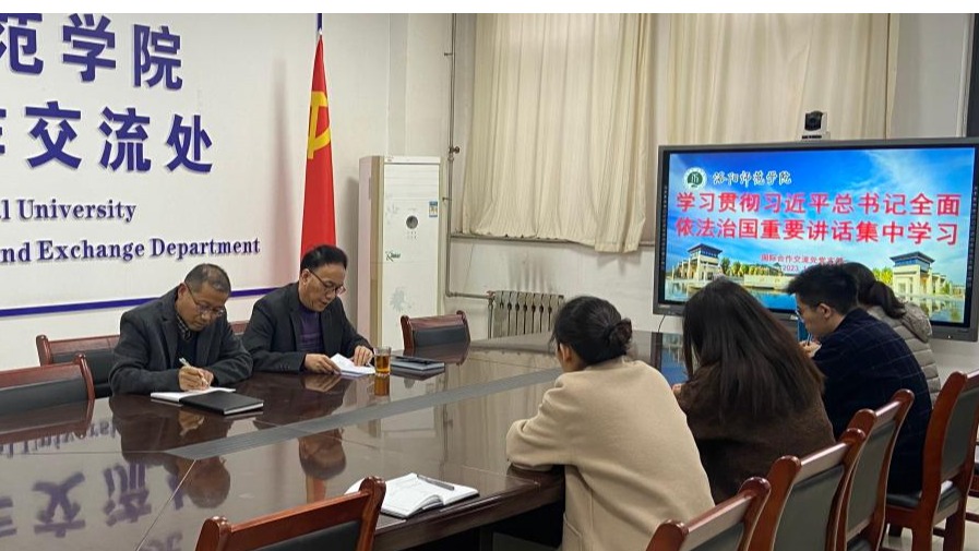 11月9日,国际合作交流处在A1-430会议室召开学习贯彻习近平总书记全面依法治国重要讲话专题会议。国际合作交流处全体党员参加会议,会议由党支部书记曲宏涛主持。
