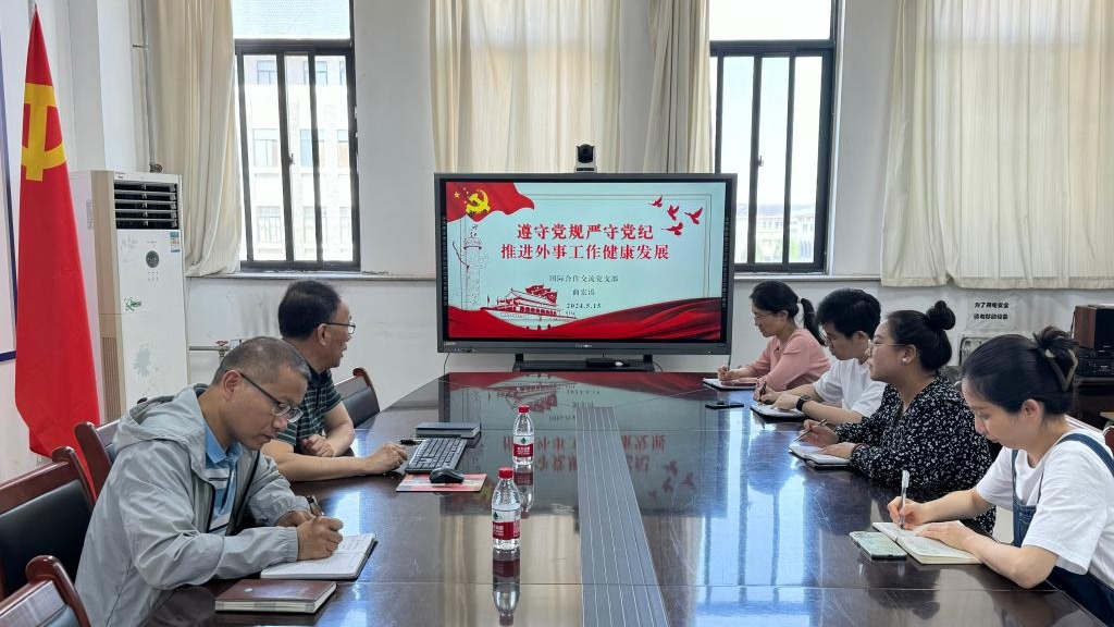 最后,曲宏涛强调:作为我校外事部门,全体党员同志要时刻严格要求自己,做到学纪、知纪、明纪、守纪,把遵规守纪刻印在心,内化为言行准则,进一步强化纪律意识、加强自我约束、提高免疫能力,增强政治定力、纪律定力、道德定力、抵腐定力,为推进学校外事工作健康稳定发展提供坚强纪律保障。