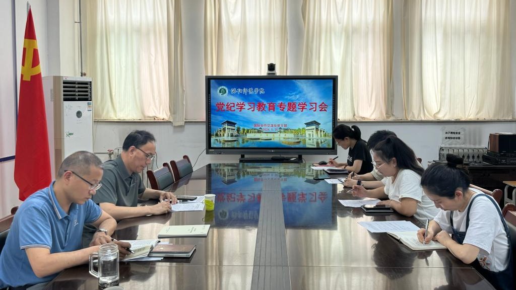 5月30日,国际合作交流处在A1-430会议室召开党纪学习教育专题学习会。国际合作交流处全体党员参加会议,会议由党支部书记曲宏涛主持。
