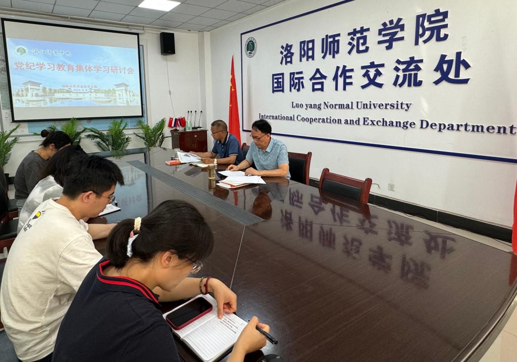 9月6日,国际合作交流处党支部在A1-430会议室召开党纪学习教育集中总结研讨会。国际合作交流处全体党员参加会议,会议由党支部书记曲宏涛主持。