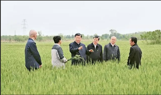 2023年5月11日至12日,中共中央总书记、国家主席、中央军委主席习近平在河北考察,并主持召开深入推进京津冀协同发展座谈会。这是11日上午,习近平在沧州市黄骅市旧城镇仙庄片区旱碱地麦田考察时,同种植户、农技专家亲切交流。新华社记者 李学仁/摄