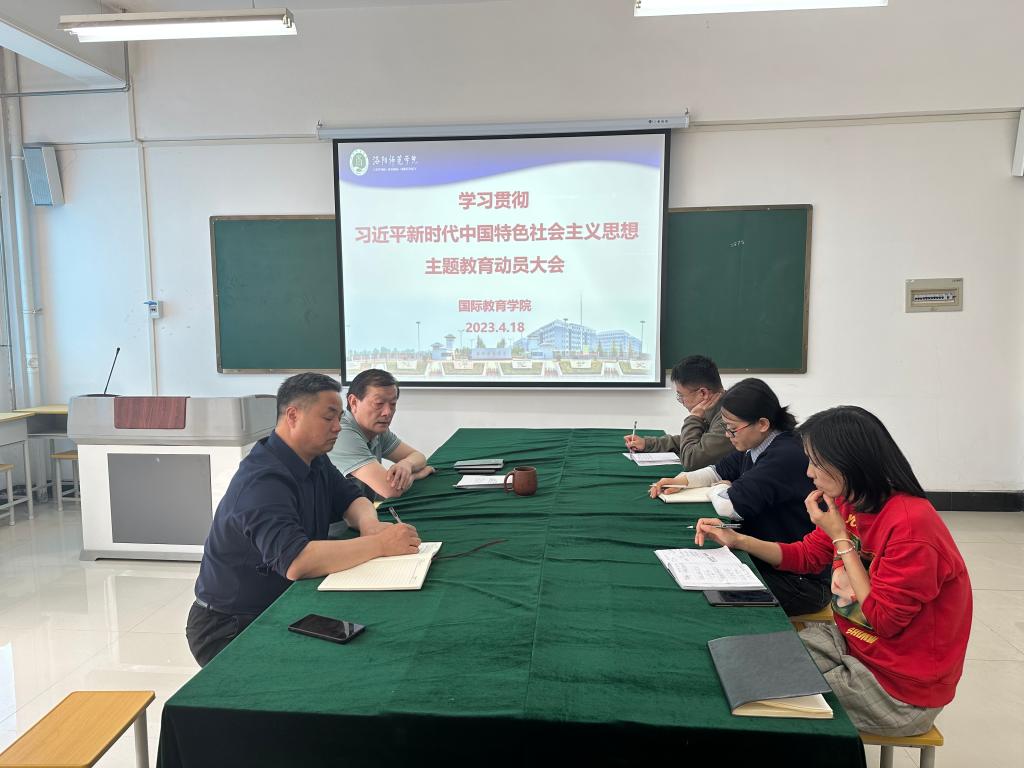 4月18日,国际教育学院直属党支部在A1-323会议室开展学习贯彻习近平新时代中国特色社会主义思想主题教育动员大会,会议由直属党支部书记赵峰主持,全体教职工参加。